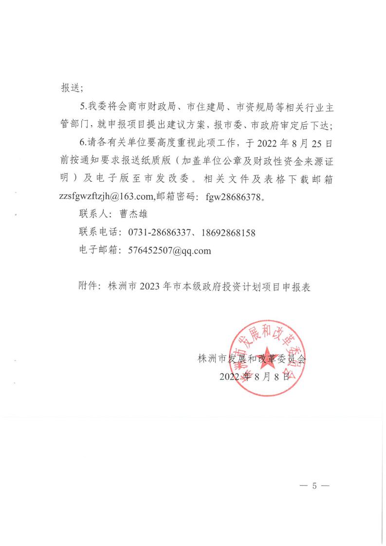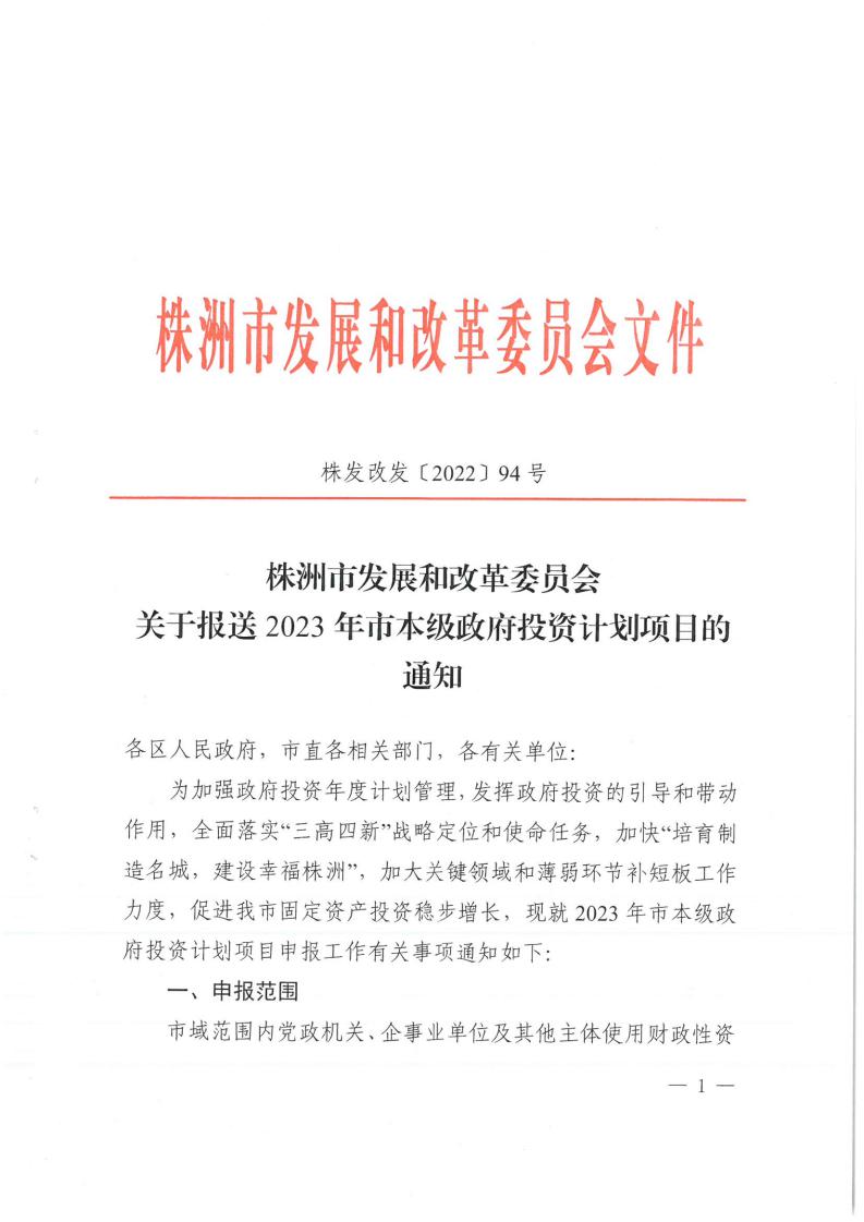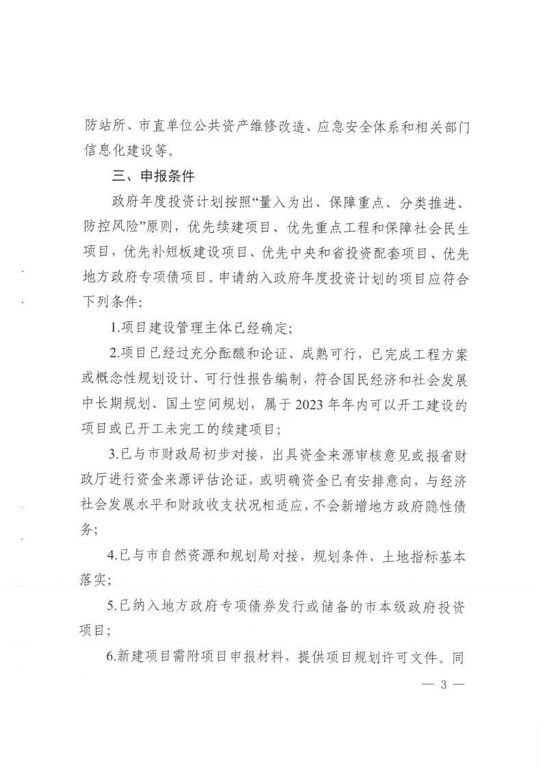关于报送2023年市本级政府投资计划项目的通知